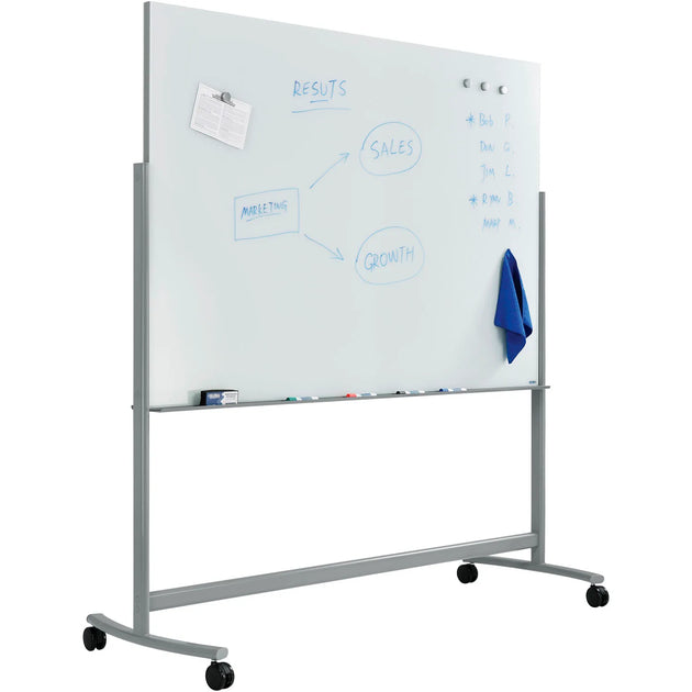 Global Industrial™ Mobile Reversible Magnetic Whiteboard - 96"W x 48"H - Steel - Silver Frame