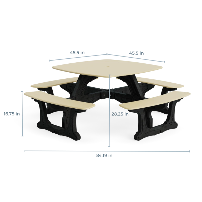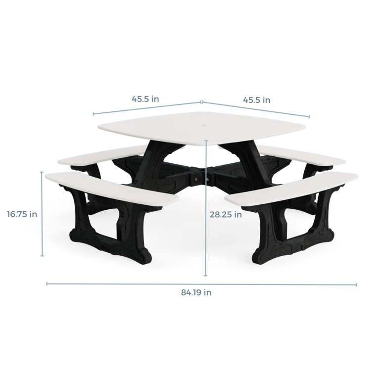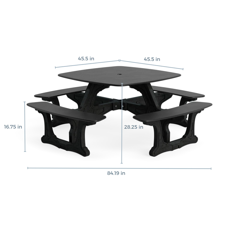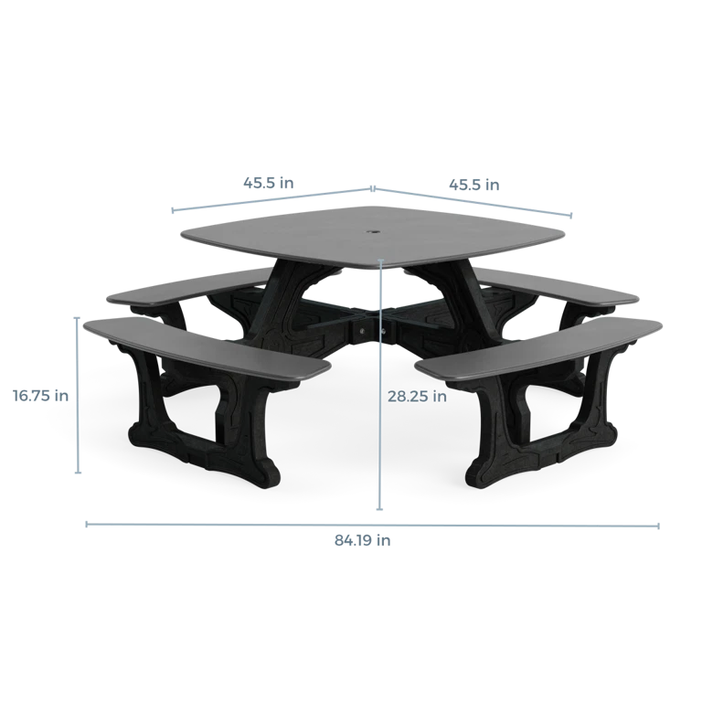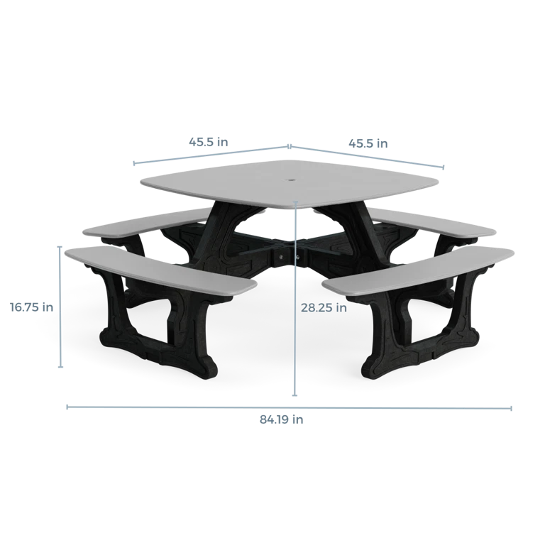 The Bistro Outdoor Table offers comfortable seating for up to 8 people, featuring a large, square tabletop. It is perfect for any restaurant patio, backyard, or common outdoor space. Whether you’re hosting family dinners, group activities, or outdoor gatherings, this table provides ample seating and a functional surface for various purposes.