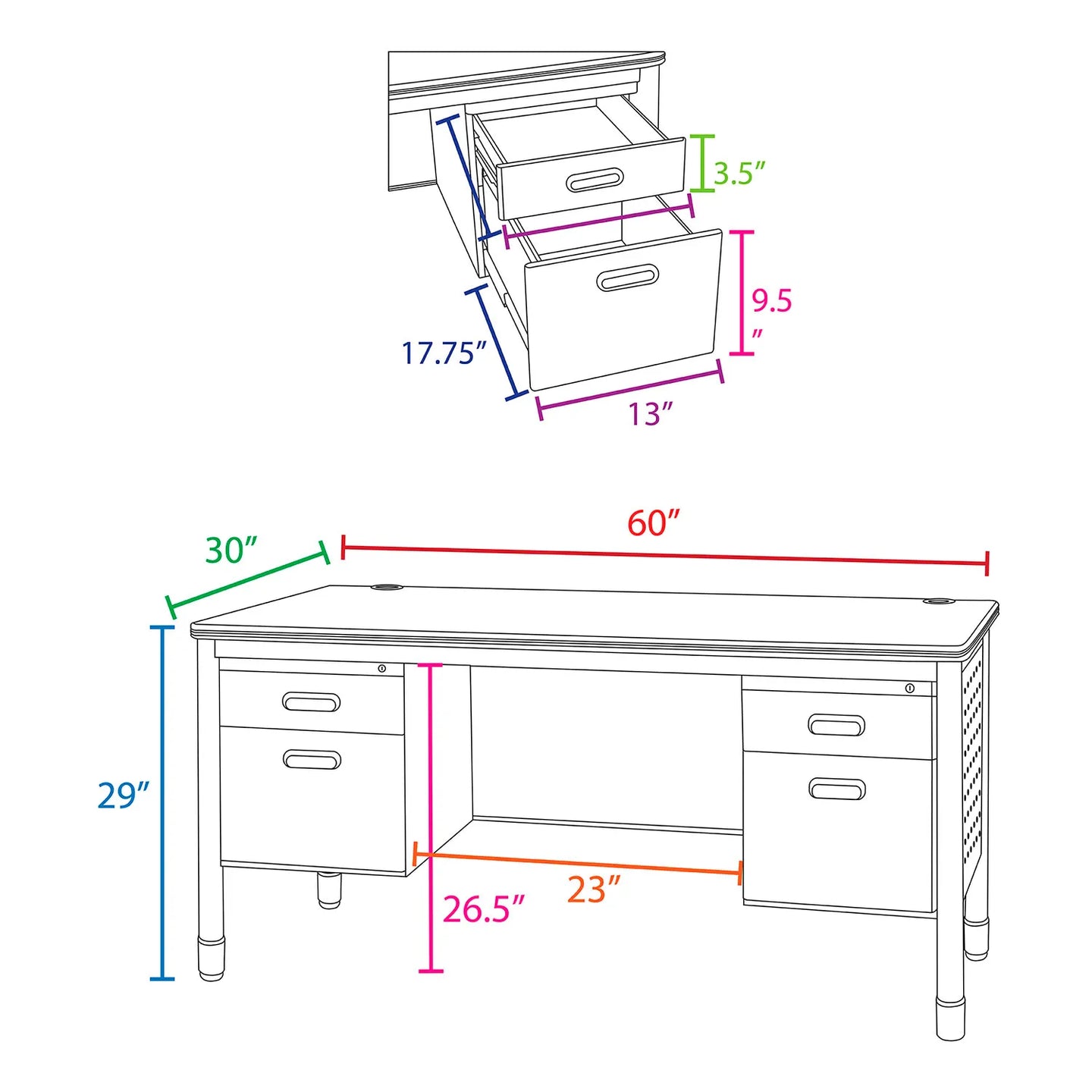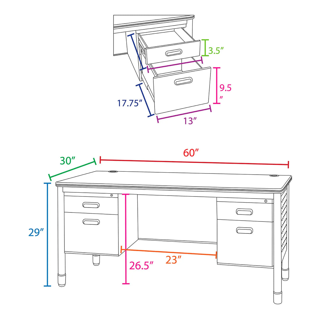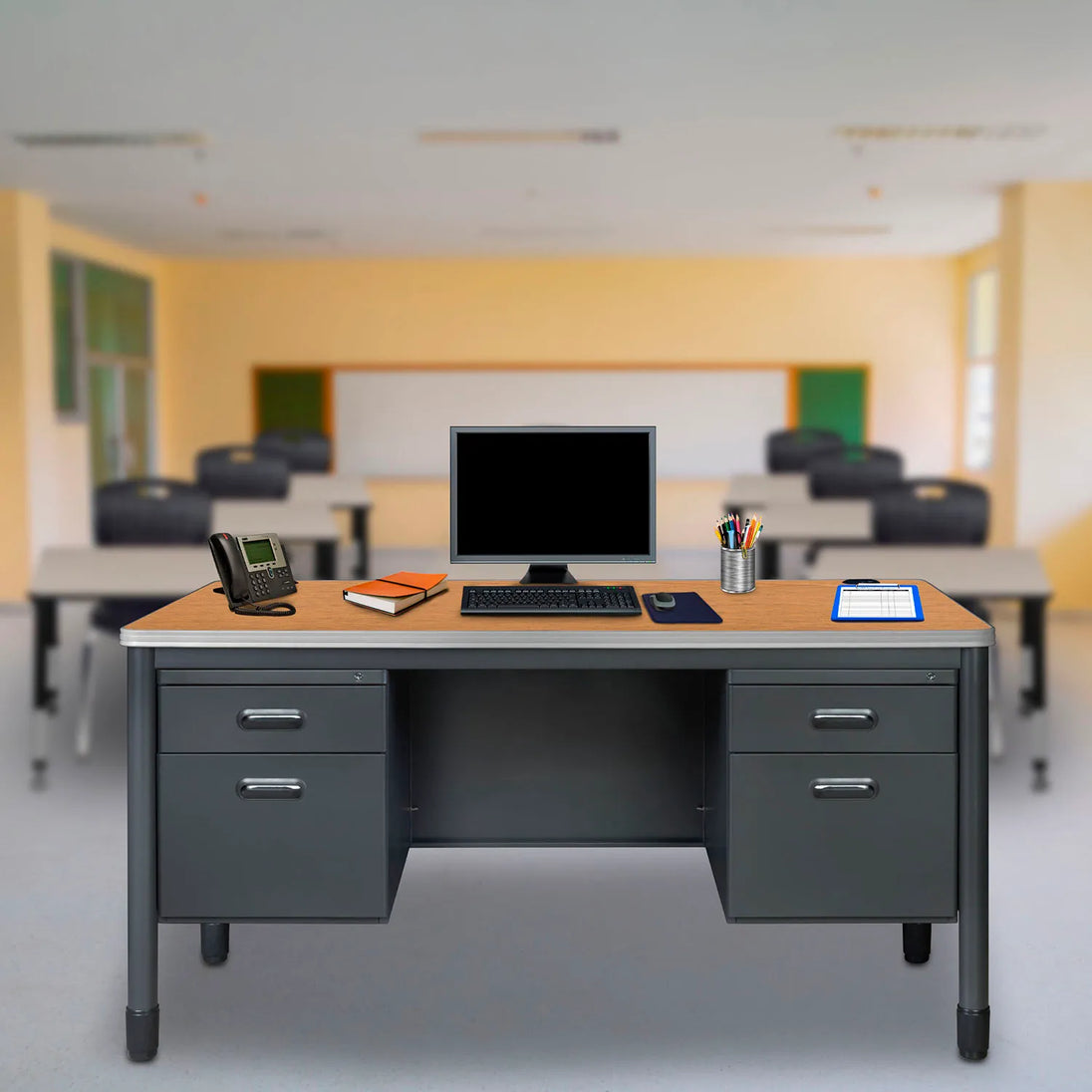 Regency Mesa Double Pedestal Teacher's Office Desk, 60"W x 30"D x 29"H, Medium Oak